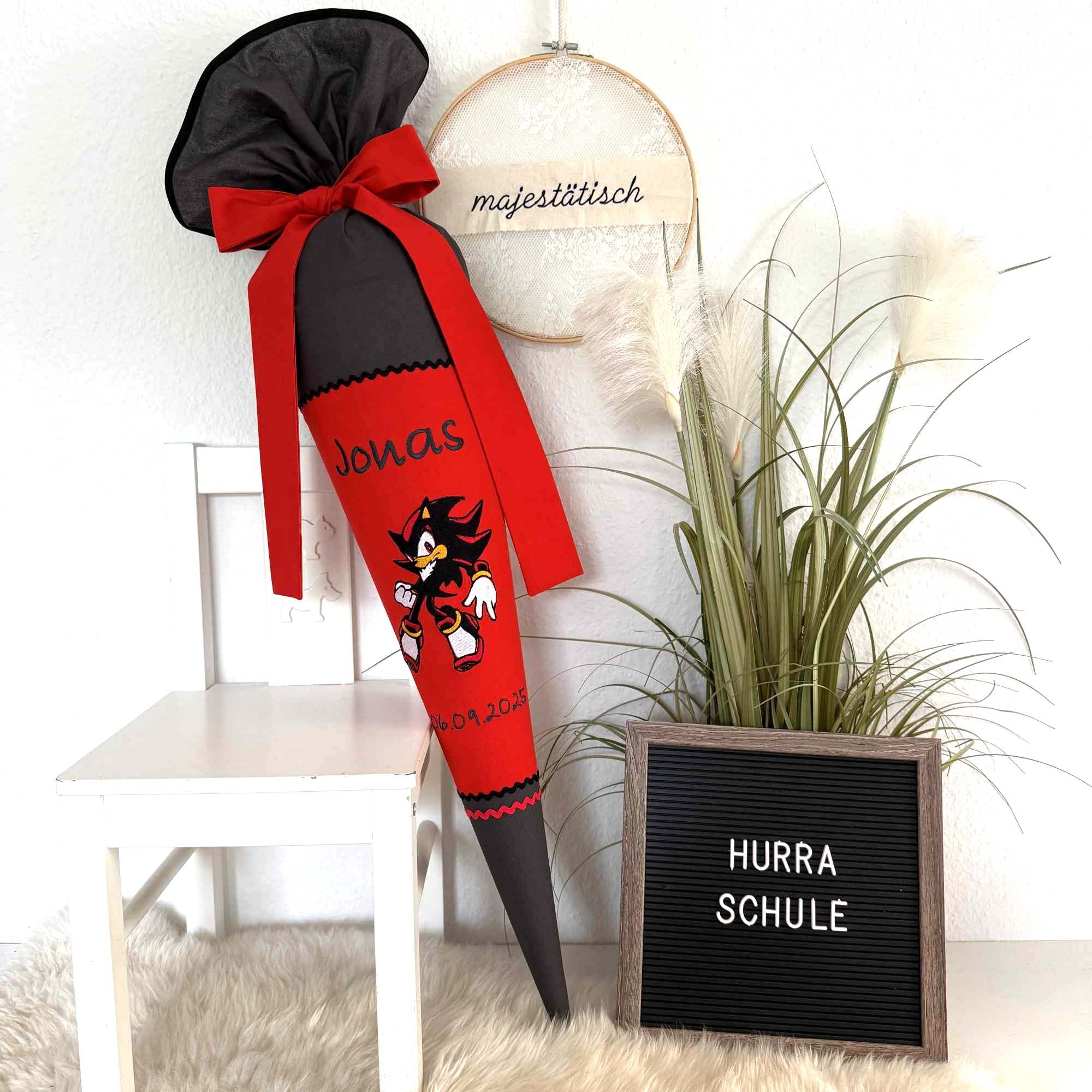 • Schultütenüberzug aus Baumwolle und Stickerei 95cm, Schleife zum Verschließen der Schultüte, Papprohling Größe 70cm