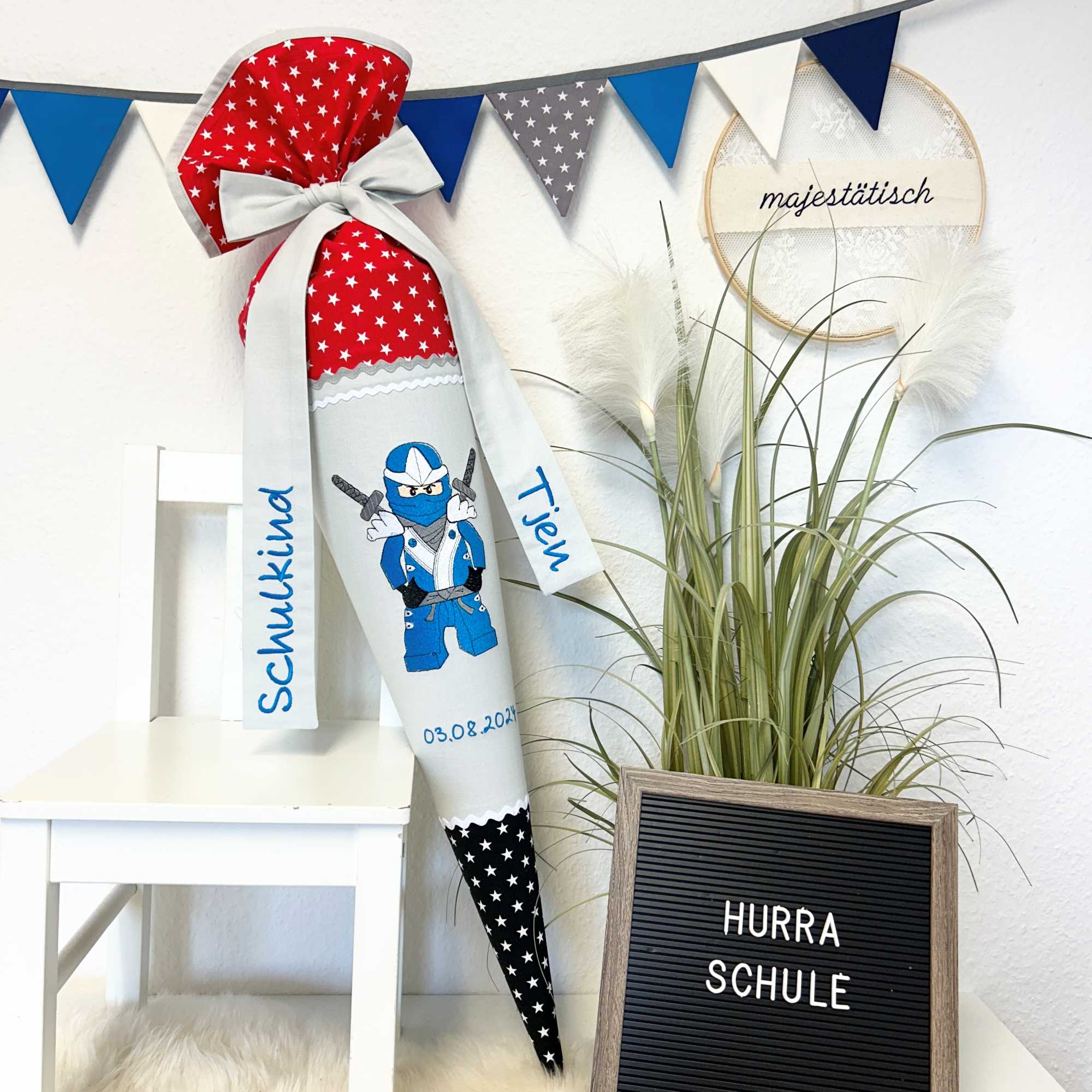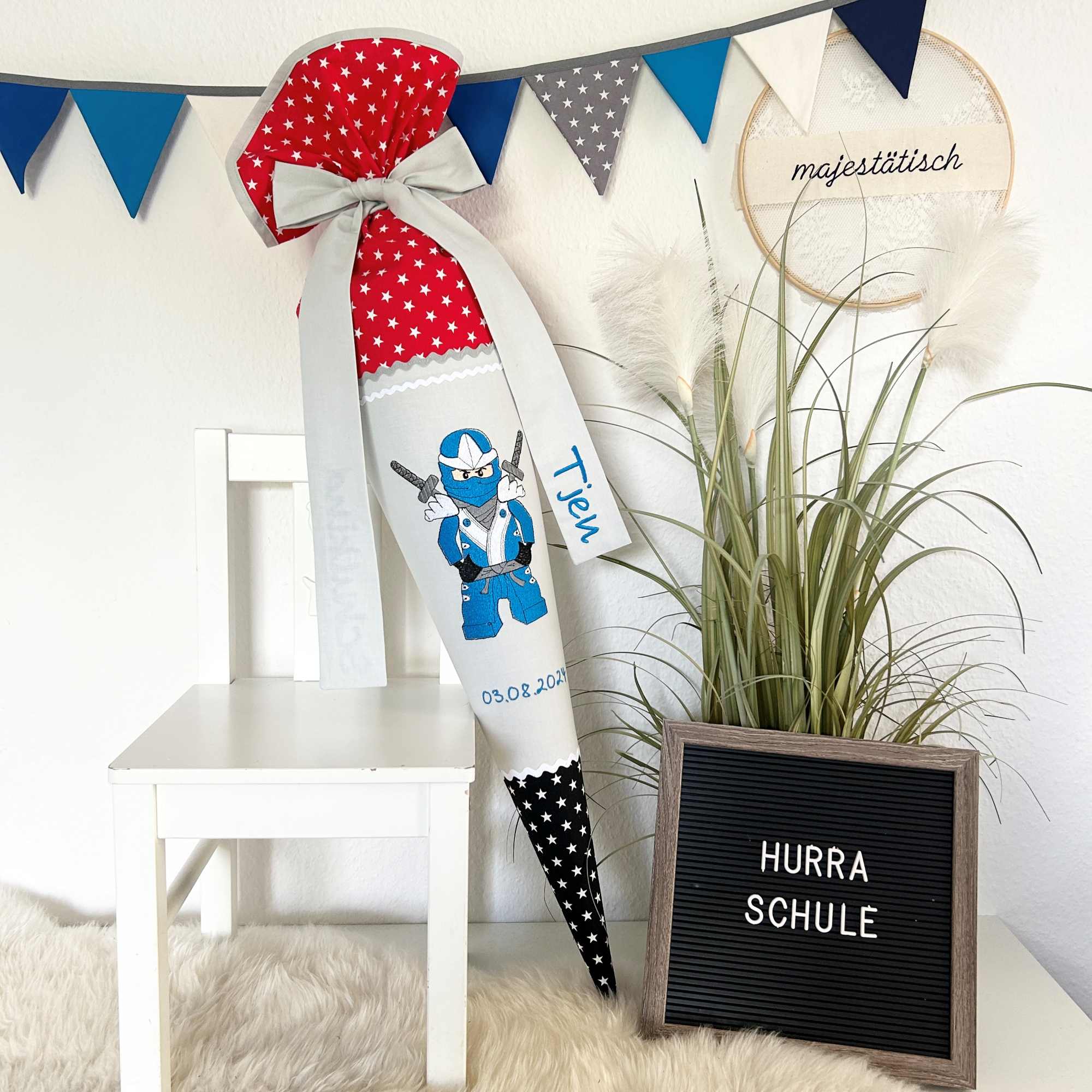 Feiert diesen besonderen Schultag mit einer einzigartigen handgefertigten Schultüte! Jede Tüte wird mit Liebe und Sorgfalt gestaltet, um das Herz deines kleinen Schulstarters höherschlagen zu lassen. Hergestellt aus hochwertigen Materialien und mit liebevollen Details verziert, ist diese Schultüte nicht nur ein Symbol des Neuanfangs, sondern auch ein unvergessliches Erinnerungsstück. Mache diesen bedeutenden Tag noch unvergesslicher mit unserer handgemachten Schultüte, die Kinderaugen zum Leuchten bringt und für bleibende Freude sorgt.