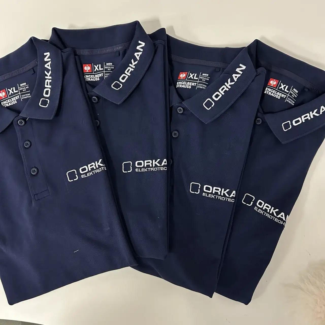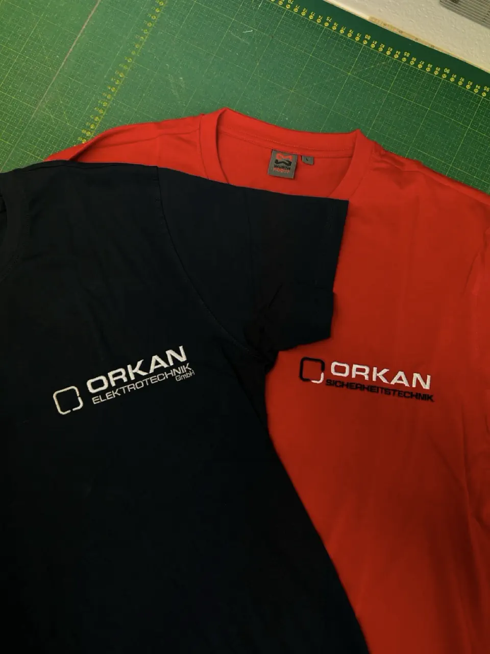 Wir verwenden langlebige Qualitätsgarne und moderne Maschinensticktechnik, die auch bei häufigem Waschen ihre Form und Farbe behalten. Die Ergebnisse überzeugen durch: